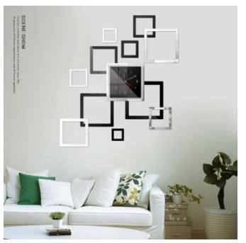 - 3D Laser Cut Wooden High-Quality Modern Silver and Black Acrylic wall clock.